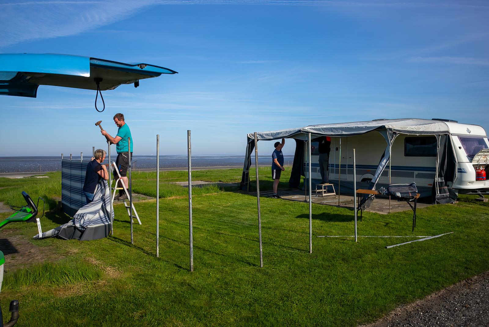 Als jahrzehnte reisender, der auch campingplätze vieler länder erlebt hat, weiß der fotograf die besonderheit des im nationalpark Wattenmeer liegenden campingplatzes Sehestedt zu schätzen. Ohne schnickschnack, natur pur, hier können menschen ganz unterschiedlicher kultur ihr urlaubs- und freizeitleben mit- und nebeneinander leben.